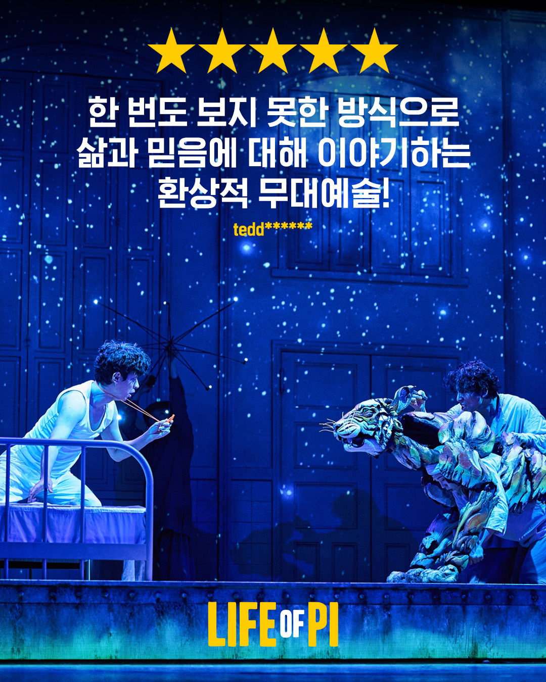 라이프오브파이 뮤지컬(라이프 오브 파이 뮤지컬)은 맨부커상, 아카데미상, 토니상을 휩쓴 명작으로, 2025년 12월 GS아트센터에서 한국 초연으로 개막합니다.